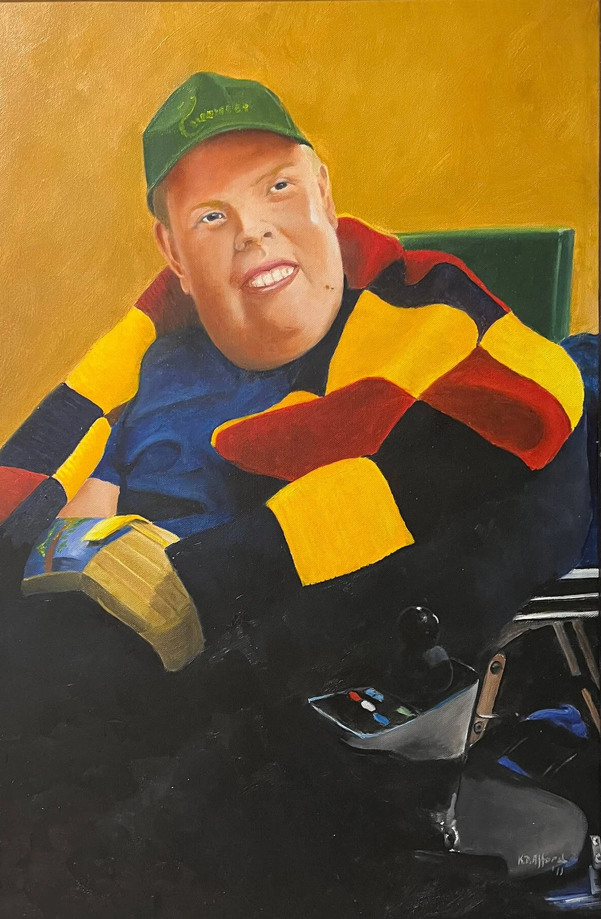 Using specialised equipment and adaptive tools, Dudley has developed a unique painting practice that allows him to translate his inner world onto the canvas. Each brushstroke tells a story of persistence, beauty, and the human spirit’s endless capacity to adapt and create.